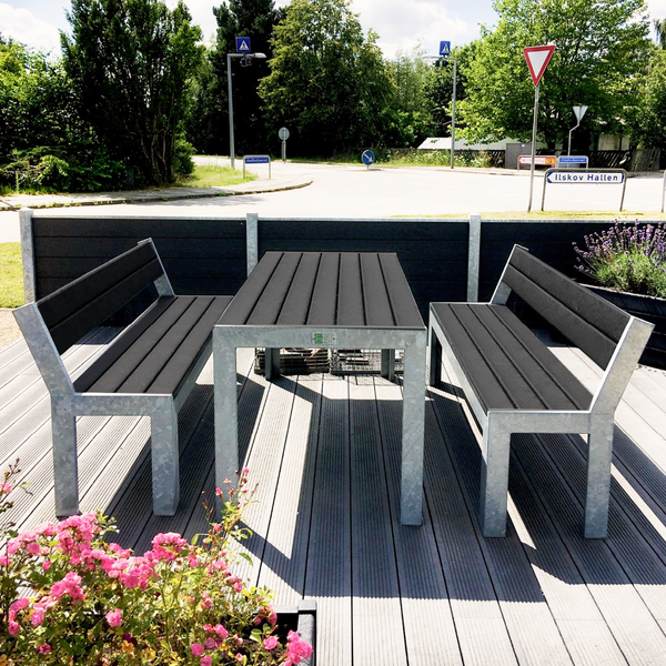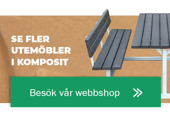 Vi har som mål att våra produkter ska innehålla så mycket återvunnet material som möjligt, därför har vi sedan länge erbjudit utemöbler i återvunnet plastmaterial.