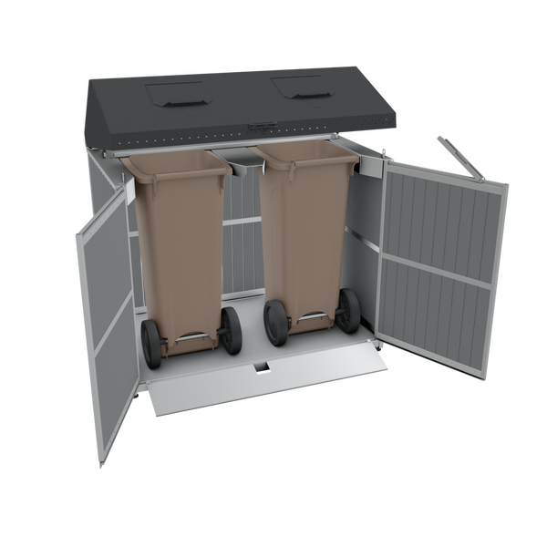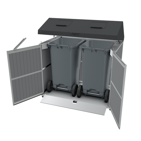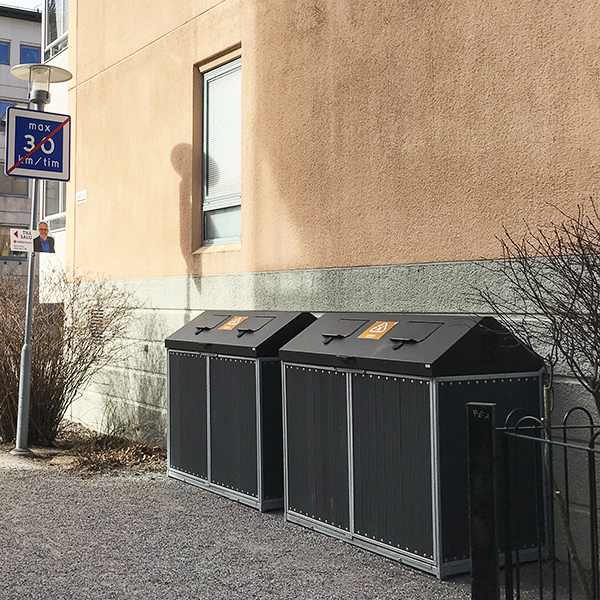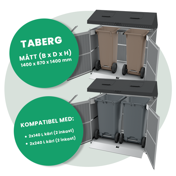 Taberg är originalmodellen och finns med 2 inkast. Kärlskåpet kan utrustas med 140 eller 240 L kärl, beroende på behov av volym.