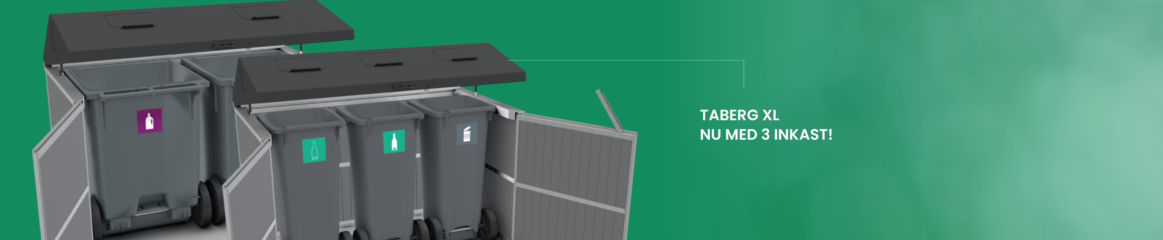 Taberg finns i två olika skåpsmodeller, Taberg och Taberg XL. Välj volym efter behov, skapa en helhetslösning eller använd Taberg som komplement för fastighetsnära insamling.