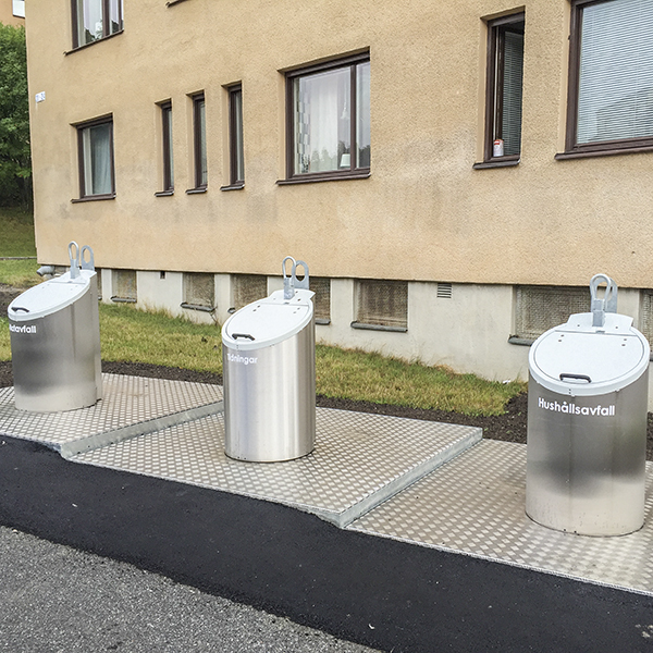 Förzinkade och lackerade i slagtålig och UV-beständig pulverlack med klotterskydd Välj mellan standardkulörern RAL 7022 umbra grey, valfri RAL-kulör eller rostfritt utförande. Inkasten kan anpassas efter vilket avfall som ska samlas in. Inkasttrummor/inkastklaffar levereras alltid i rostfritt material.